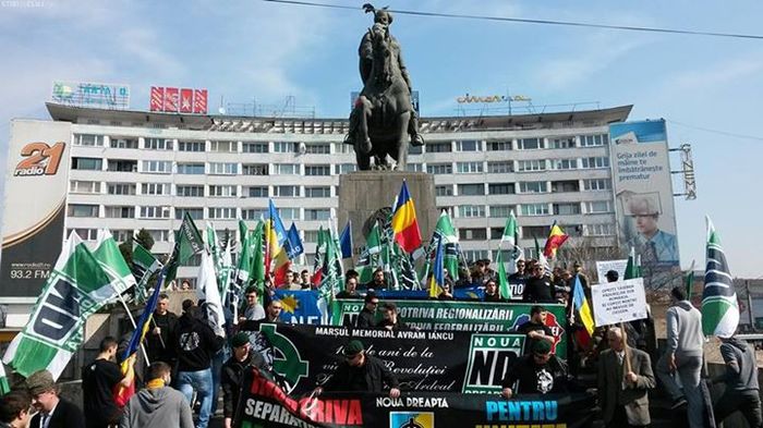 La monumentul lui A.Iancu din Cluj,doar o coroana saracacioasa depusa...